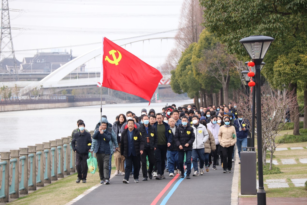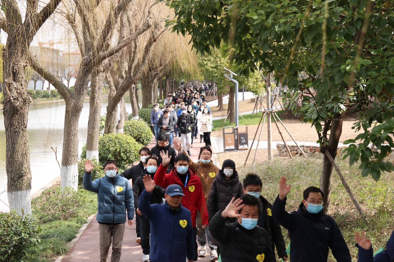 海科路园区、光源园区和蛋白质园区三路纵队浩浩荡荡、阔步前行,沿着川杨河最美河岸线,迎着久违的灿烂阳光,拉开了健步行活动的序幕。