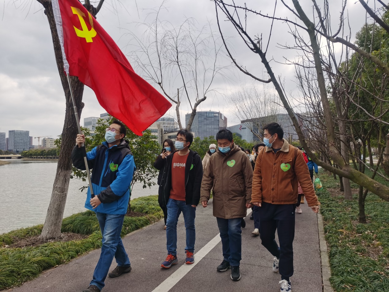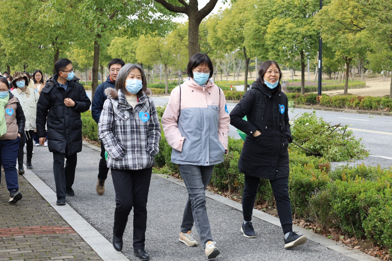 上午11时,黄政仁致活动开幕辞并准时发令。海科路园区、光源园区和蛋白质园区三路纵队朝着同一目的地同时出发,由李燕书记、邰仁忠副院长和秦文明副主任各带一队,沿川杨河开启健步行活动。大家迎着暖阳、边结伴而行,边畅聊谈心,最终顺利“会师”海科路99号。