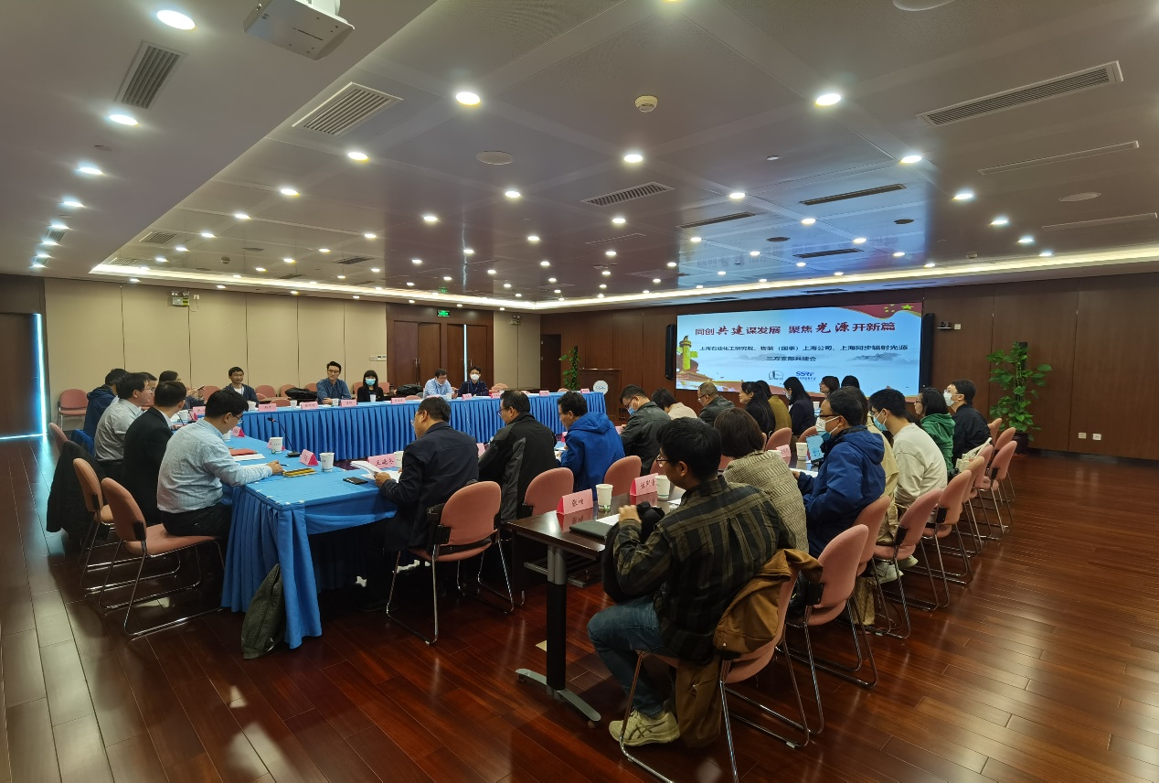 随后,与会三方围绕上海光源、中石化和物装(国事)上海公司的总体情况进行了充分的交流和讨论,围绕线站设备采购、线站发展、合作创新、人才培养等问题分享了想法与建议,规划了同创共建活动实施计划。
