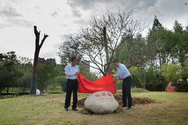 随后,两所领导共同种下象征两所友谊的“报国梅”,两所科研骨干吟诵纪念诗词,表达对蒋华良院士的思念之情。沈敬山研究员、柳红研究员撰写诗歌《报国梅》、《植梅》,张磊砢研究员、彭珂研究员吟诵蒋华良院士词作《江城子.梅等瘟灭》、《行香子.又到武汉》,讴歌蒋华良院士的宝贵精神,纪念两所携手同行、并肩作战的深厚情谊,表达作为科研人员投身科研、报效祖国的拳拳赤子之心。