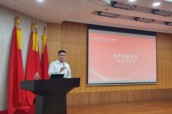 孟飞龙研究员为导师代表发言,他以导师和学长的身份欢迎2023级新生来到320大院。他激励同学们要勇于挑战自我,提升科研品位,保持科研定力,注重合作与交流,争取尽早进入科研人的状态。同时,他还特别强调,要珍惜读研的时光,切勿浪费宝贵时间,积极做到与导师和同学密切的沟通交流,提升科研效率。