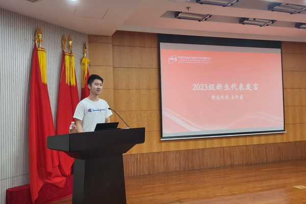 本科毕业于中国科学院大学的王行睿同学作为2023级新生发言,他期盼同学们能够成为彼此扶持、相互鼓励的好友,共同在中心汲取新知识、增长实验技能,传承好老一辈科学家们的优秀科研精神,不懈奋斗,为国家建设成为世界科技强国贡献青春力量。
