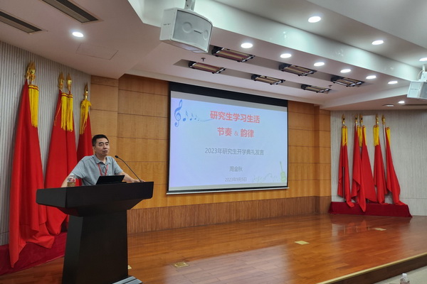 周金秋以“研究生学习生活的节奏与韵律”为主题给全体新生上“入学第一课”。他希望全体新生准确把控好研究生学习生活的节奏,在中心茁壮成长,毕业后能收获满满的信心,拥有广博的知识体系,具备突出的创新思维和意识,为科技自立自强中国梦贡献自己的一份力量。