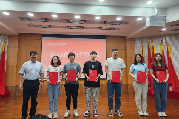 典礼中,周金秋宣读了2023年优秀学生表彰名单,刘小龙为优秀学生代表颁发荣誉证书。他们对获奖的同学表示诚挚的祝贺,并鼓励全体新生以优秀的师兄师姐们为榜样,积极向上,争取进步。