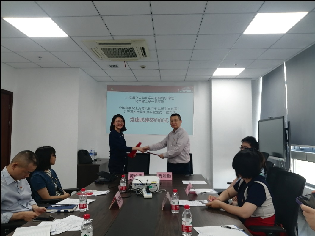 中国科学院有机化学研究所生命过程小分子调控全国重点实验室-上海师范大学化材学院党支部开展联建签约和“牢记使命,科技强国”主题党日联学活动