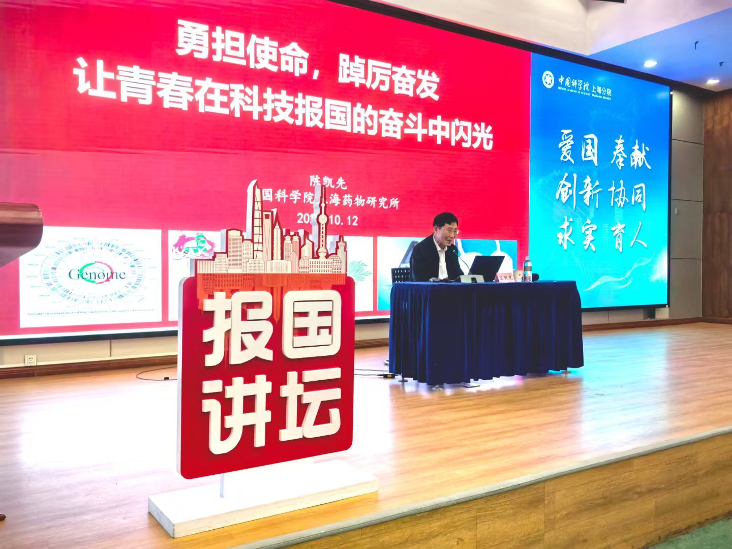 第十期报国讲坛邀请中国科学院院士陈凯先作题为《勇担使命,踔厉奋发——让青春在科技报国的奋斗中闪光》的专题报告。在报告中,他以生物医药领域为例,强调当好科技创新生力军的重要性,深入剖析了生物医药创新发展的趋势。他提到,科技创新的重点与热点不断涌现,若干重要疾病的药物研发态势也日新月异,特别是人工智能的快速发展,为生物医药领域带来了新的技术革命浪潮,为科研人员提供了前所未有的机遇。陈凯先详细解读了以爱国、创新、求实、奉献、协同、育人为特征的科学家精神,并分享人生感悟,鼓励青年科研人员要磨炼刻苦钻研、不怕任何艰难的奋斗精神,树立科技报国、创新为民的家国情怀。他强调,一代人有一代人的责任,他号召青年科技工作者弘扬新时代科学家精神,在科技报国的奋斗中实现人生价值。