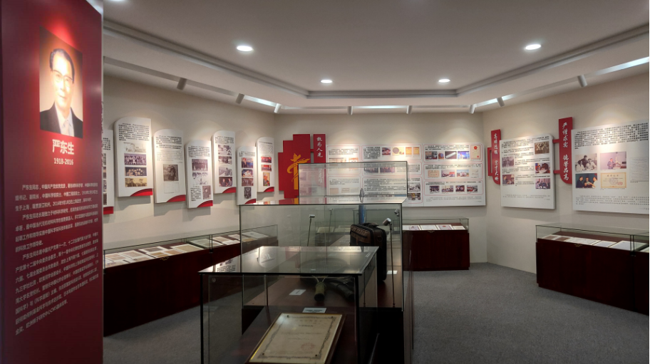 坐落在长宁区定西路1295号严东生生平展室,面积35平方米,分为“前言-历程-精神-完美人生-后记”,其中“精神”板块凝练为“敢为人先、攻坚克难”,“高瞻远瞩、宏才大略”,“严谨求实、德馨品高”,“甘为人梯、奖掖后学”,“国际视野,架桥世界”等五大部分,梳理了严东生先生生前视频、照片、手稿、实物等进行展陈;另设有严东生办公室原址,面积30平方米,还原严东生先生办公室场景;为深化和巩固科学家精神学习实效,开设了一间可容纳100-150人会议室,作为学风教育场所,供参观者专题讨论和经验分享;展陈同设了严东生先生传记电影《诗与真》、人物传记、电视专题片,殷之文、李家治科学生涯视频片等。