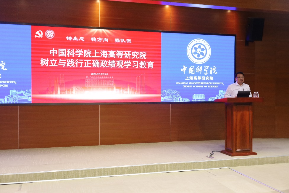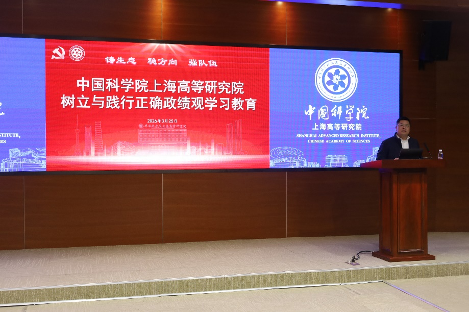 为深入开展树立和践行正确政绩观学习教育,引导广大党员干部从思想深处正本清源、锤炼过硬作风,2026年3月25日下午,中国科学院上海高等研究院(下面简称“上海高研院”)举办第一期树立和践行正确政绩观学习教育读书班。上海高研院领导班子成员、院务委员、党委委员、中层干部及各党(总)支部书记参加读书班。