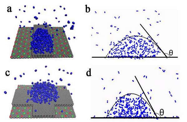 上海光源软X射线组in-house研究团队发现了不同亲疏水性的纳米周期性结构对纳米气泡的生长位置和界面性质具有较好的调控作用,理论模拟结果和实验能够很好的吻合,并对实验结果进行了深入的解释。该工作发表于《英国皇家化学会杂志》( Lei Wang et., Formation of Surface Nanobubbles on Nanostructured Substrates, Nanoscale, 2016,doiDOI: 10.1039/C6NR06844H)。