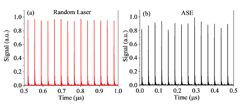 脉冲泵浦是产生超短脉冲拉曼光纤激光的有效手段,但是脉冲泵浦需要实时反馈控制以实现泵浦脉冲与腔内激光脉冲的同步,否则将在拉曼脉冲输出中引入额外的噪声。基于此,课题组研究提出一种自同步泵浦机制。该机制利用光纤中的分布式瑞利散射反馈实现激光腔长与泵浦脉冲间隔的自匹配,实现了皮秒随机分布式反馈拉曼光纤激光输出。利用该脉冲泵浦的光纤激光结构,直接表征了随机分布式反馈,并首次对随机激光与放大自发辐射进行了详细的比较研究。该研究成果发表于[Laser Photon.Rev.12, 1700326(2018)]