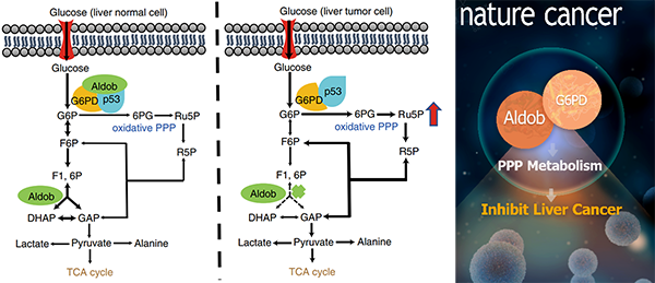 2020年7月6日,国际学术期刊 Nature Cancer 在线发表了中国科学院上海营养与健康研究所尹慧勇课题组题为“Aldolase B Suppresses Hepatocellular Carcinogenesis by Inhibiting G6PD and Pentose Phosphate Pathways”的最新研究成果,首次阐明了果糖-1,6-二磷酸(Fructose-1,6-bis-phosphate,FBP)醛缩酶B(Aldolase B, Aldob)在调控肝癌代谢重编程(Metabolic reprogramming)中的作用、机理及临床意义。