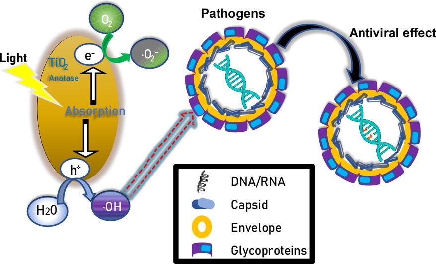 随着新冠病毒、流感病毒及肠病毒等高致病性病毒的出现,人流密集的公共场所如医院、学校等成为极易爆发流行性疾病的风口,特别是在医院等公众卫生设施中传播性较强,易对公众的生命健康造成极大危害。光催化技术作为一种广谱的抗病毒方法具有广阔的应用前景,尤其是面对新冠病毒这类传染性强且可以在较长时间内稳定存活于环境中的病原体,常规“消杀灭”不能大面积、反复处理时,光催化材料可凸显其安全、经济、高效的特点。