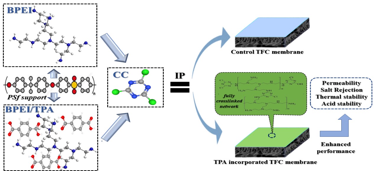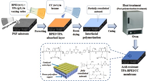 该研究得到科技部国家重点研发计划(2021YFC3201402),中科院前沿科学和教育局(QYZDB-SSW-DQC044)、国际合作局(132C35KYSB20160018)、CAS-CSIRO(132C35KYSB20170051)重点项目资助。研究成果现有发表在膜领域顶级期刊Journal of Membrane Science上,题为High performance polyamine-based acid-resistant nanofiltration membranes catalyzed with 1,4-benzenecarboxylic acid in interfacial cross-linking polymerization process和Polyamine-based thin-film composite nanofiltration membrane embedded with catalytic chemical additive for enhanced separation performance and acid stability,博士研究生Lasisi Kayode Hassan为论文的第一作者,张凯松研究员为论文通讯作者。