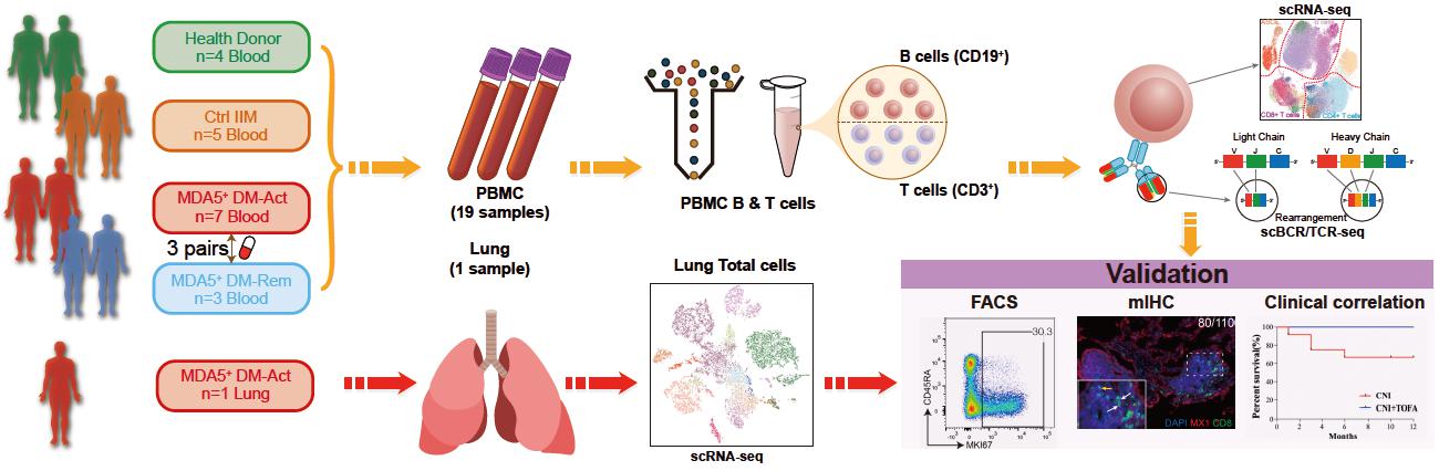 Nature Communications︱上海巴斯德所张晓明课题组应用单细胞技术揭示高致死MDA5抗体阳性皮肌炎核心免疫学特征和治疗新思路