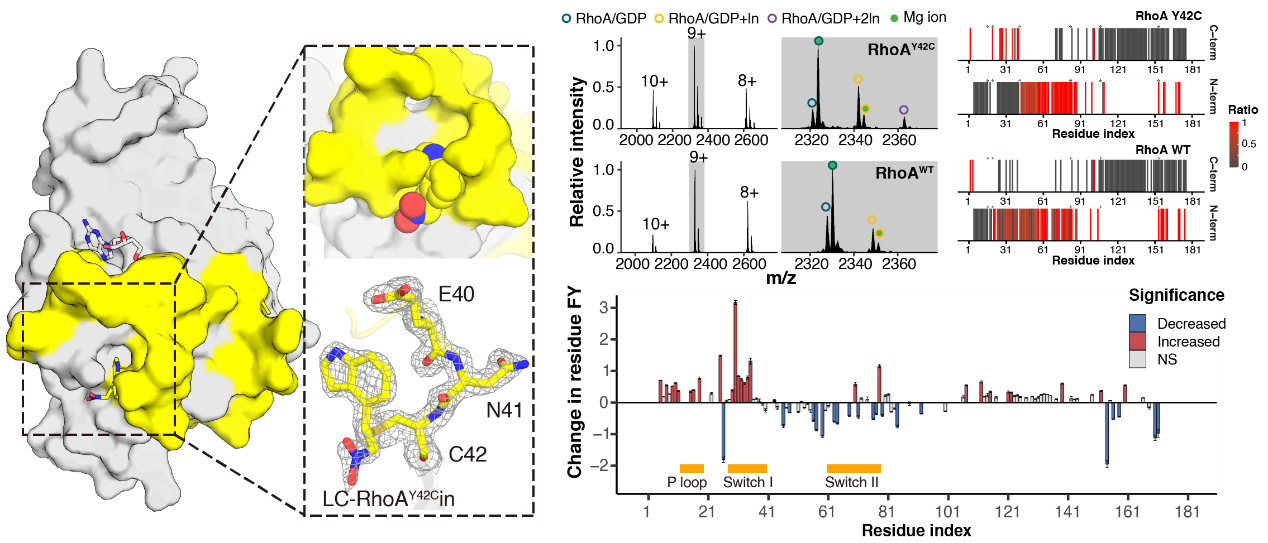 高分辨复合物晶体结构和UVPD-MS研究表明LC-RhoAY42Cin特异性结合Y42C位点