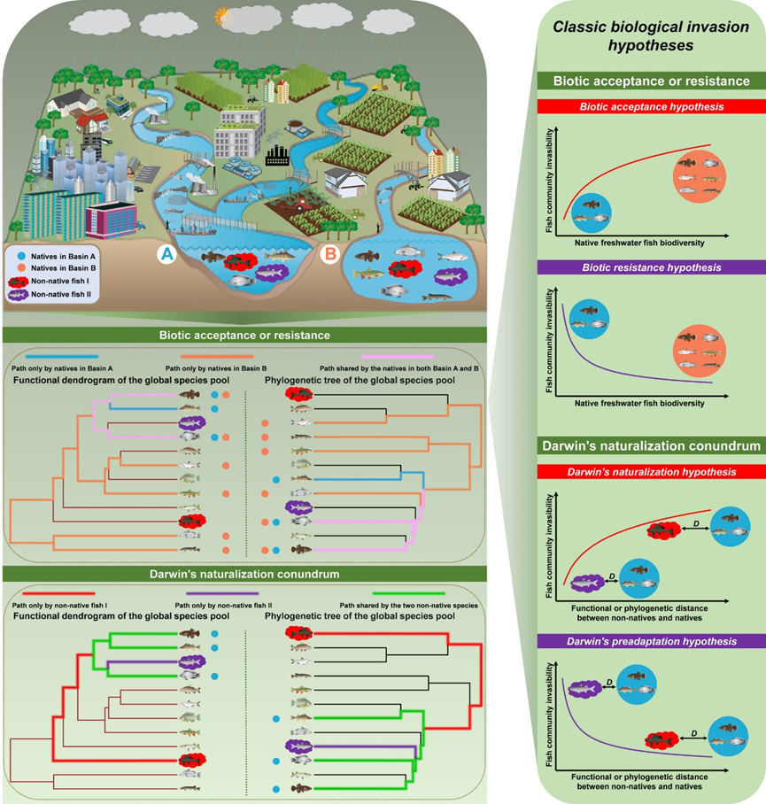 自工业革命以来,外来淡水鱼类在世界范围内被广泛引入,对当地生物多样性、公共卫生和社会经济等方面构成了严峻挑战。然而,关于外来鱼类入侵的驱动机制仍存诸多争议,亟需从多角度加以解析。