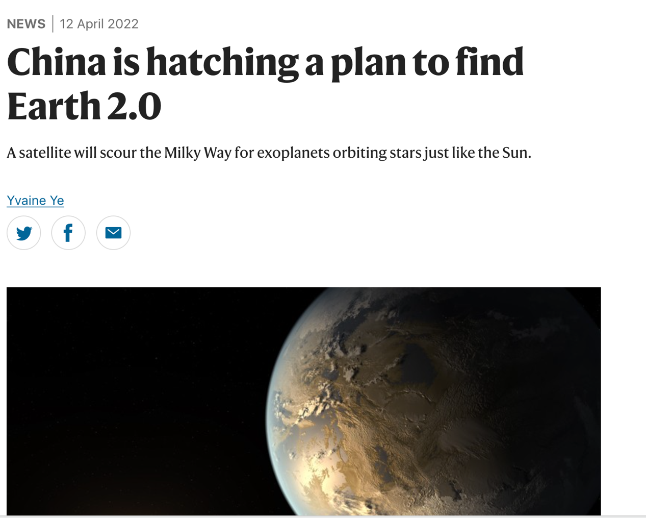 4月12日,国际顶级期刊Nature杂志还在新闻版块刊登了一篇介绍“地球2.0”项目的新闻,详细介绍了项目的重要意义和基本思路。