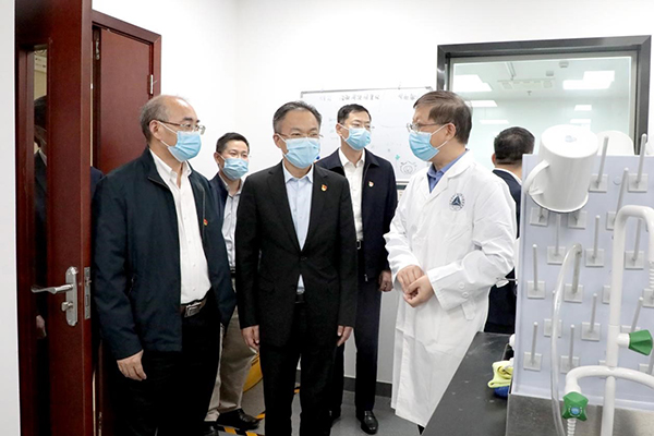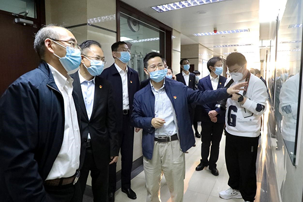 在上海有机所展示厅,陈金山参观并听取有机所所史、近年重要科研成果、研究所未来主攻方向等介绍。在生命过程小分子调控全国重点实验室、金属有机化学国家重点实验室,陈金山察看并听取科研进展情况介绍。