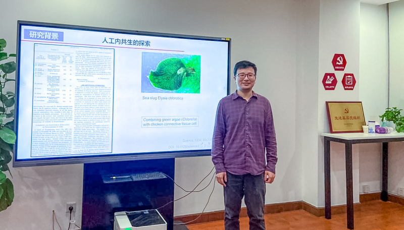 凌祺桦研究员首先介绍了真核细胞的起源相关背景知识,谈到光合真核生物是由非光合真核宿主细胞与光合蓝细菌或藻类内共生体之间的内共生并演化而来的,对内共生细菌是如何在宿主细胞内建立内共生、进化并转化为细胞器提出关键疑问。