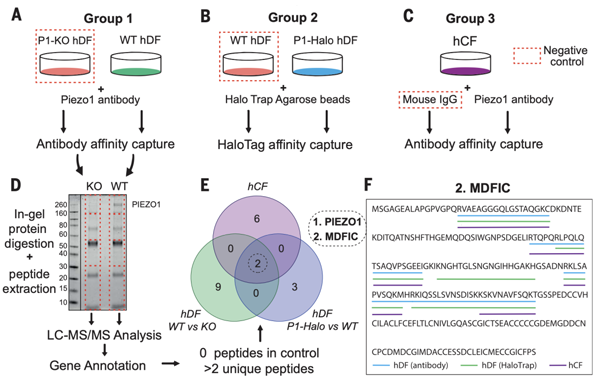 图1.亲和捕获质谱鉴定MDFIC是Piezo结合蛋白