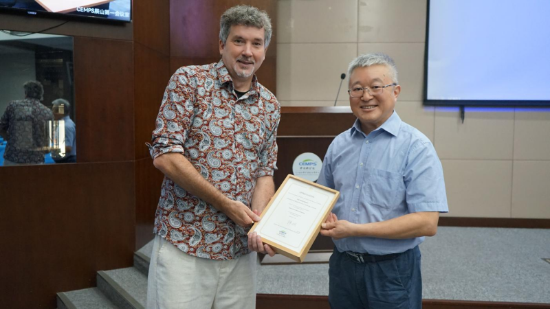 报告现场座无虚席,许多师生驻足后排与两侧,全程聆听长达两个多小时的讲座。在提问环节,与会师生积极发言,交流热烈,学术氛围浓厚。在热烈掌声中,两位教授圆满结束了学术分享。为感谢其到访与精彩报告,韩斌院士代表中心向Elliot Meyerowitz教授和Henrik Jönsson教授颁发嘉许证书。