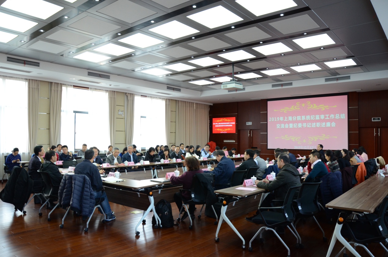 为深入贯彻落实习近平新时代中国特色社会主义思想,贯彻落实好上级党组织关于纪委书记聚焦纪检工作主业主责,落实纪委书记年度考评的工作部署,12月12日,中科院上海分院召开2019年纪检工作总结交流会暨纪委书记述职述廉考评会。上海分院分党组书记、副院长、沪区党委书记李正华,分党组副书记、纪检组组长、沪区党委副书记、纪委书记沈兆雷以及沪区纪委委员、系统各研究院所纪委书记、副书记、纪监审部门负责人、纪监审干部等近70人参加会议。中科院直属机关纪委书记刘红辉、纪检工作部部长马强应邀出席会议。