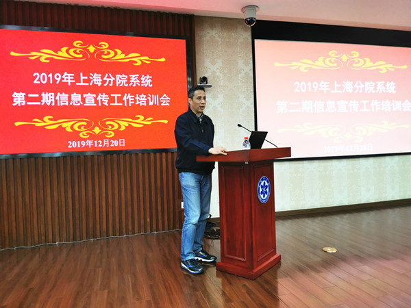 12月20日,上海分院举办2019年第二期信息宣传工作培训,旨在加强上海分院系统科学传播队伍建设,不断提升各宣传团队成员的业务水平。中科院上海分院分党组副书记、沪区党委副书记沈兆雷出席培训会,上海分院系统研究所近30名信息宣传团队成员参加本次培训。