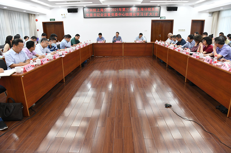 为深入学习贯彻习近平总书记“七一”重要讲话精神,进一步落实中科院2021年党建工作推进会精神,强化党史学习教育第二阶段工作的质量成效。10月9日下午,中科院上海分院分党组、沪区党委召开2021年三季度党委书记会暨中心组理论学习(扩大)会。上海分院分党组书记、沪区党委书记李正华,上海分院院长、分党组副书记、沪区党委副书记胡金波,上海分院分党组成员、副院长赵健以及分院党建督导组成员、系统各单位党委书记、副书记、纪委书记、党办主任等共50余人出席。