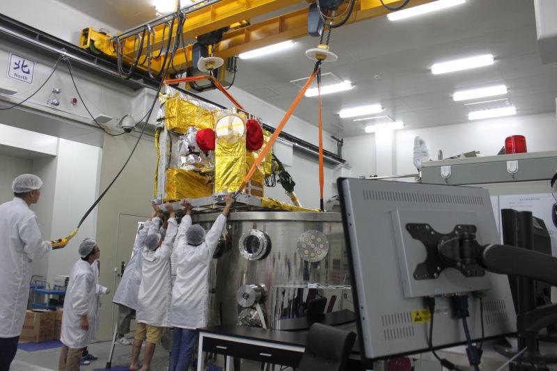 图为科研人员正在为真空环境下的模拟实验做准备。