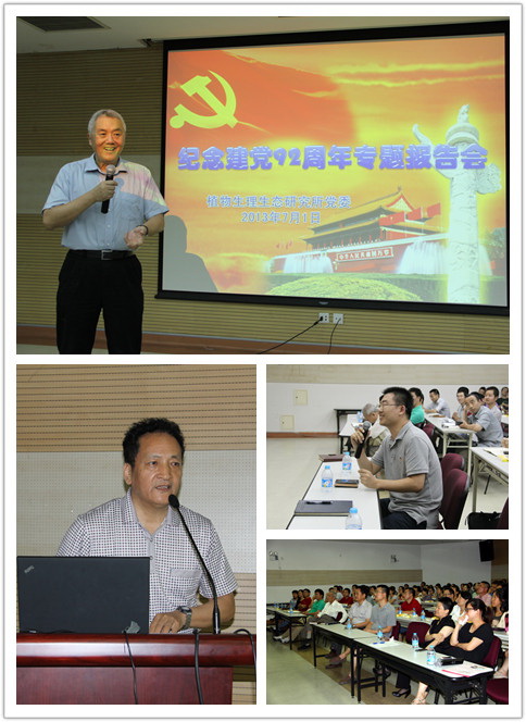 在建党92周年纪念日,赵国屏院士为植生生态所职工和研究生做了“寻梦之途”的专题报告。报告会由党委副书记何玉科主持,沈敏俊副所长、沈允钢院士、部分研究组长、科研骨干、管理人员和研究生近二百人参加了报告会。