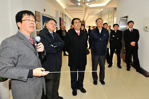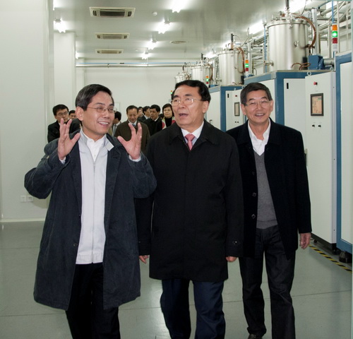 在上海光学精密机械研究所,白春礼一行考察了高功率激光物理联合实验室、神光高功率激光装置、强场激光物理国家重点实验室,听取了上海光机所所长李儒新关于研究所“一三五”战略及近期主要研究成果的汇报。白春礼在视察中,不时就所关心的问题与科研人员进行交流,并对上海光机所在相关领域取得的科技成果表示了肯定。他鼓励科研人员在“十二五”期间继续努力,紧密围绕“一三五”工作,争取早日实现重大突破。