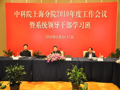 3月16日至17日,上海分院举行2010年度工作会议暨领导干部学习班。中科院副院长江绵恒同志出席会议并做重要讲话。会议分别由上海分院党组书记、常务副院长、沪区党委书记华仁长,副院长、党组副书记、沪区党委副书记王建宇主持。