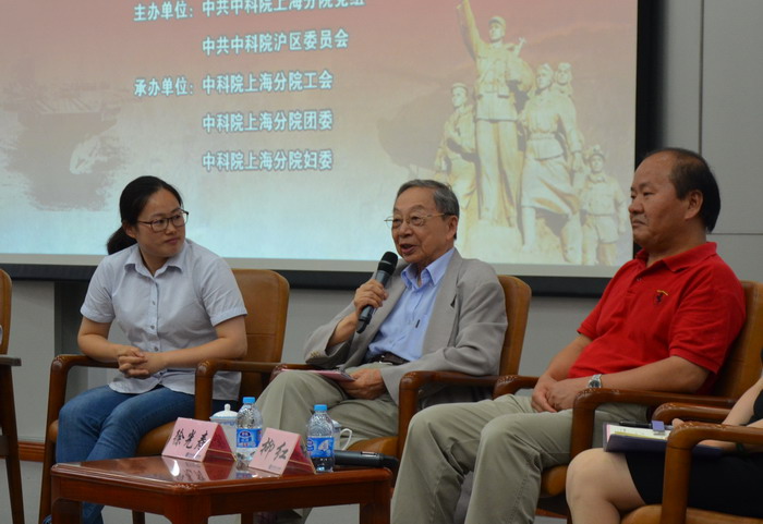中科院上海有机所戴立信院士、上海市中共党史学会副秘书长徐光寿教授、中科院上海药物所柳红研究员、中科院上海微小卫星工程中心沈苑研究员应邀与青年科技工作者围绕“铭记历史、科技圆梦”主题进行了问答式互动交流。