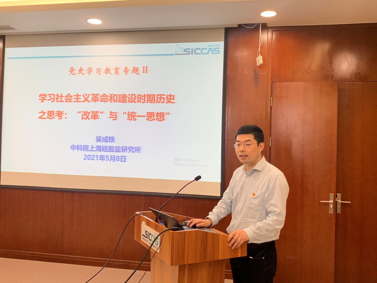 所党委委员、副所长吴成铁以“改革”与“统一思想”为主题作重点发言,领学了社会主义革命和建设时期重大历史事件、取得的成就、积累的经验等方面内容,他指出,在这一历史时期,在党中央统一领导下,全国一盘棋,集体攻关,自主发展了以“两弹一星”为代表的尖端国防力量,形成了干事创业的强大合力。他提出,当前我国科技领域正处于重大转型期,科技工作要根据新时期新要求作出相应调整。全所上下需要进一步凝聚共识,从思想上、行动上、目标上统一到统筹推进科技体制机制改革中,以解决国家重大需求为导向,持续提供高质量的科技供给,同时全力以赴推进国家重点实验室改革工作,强化无机材料“国家队”力量。