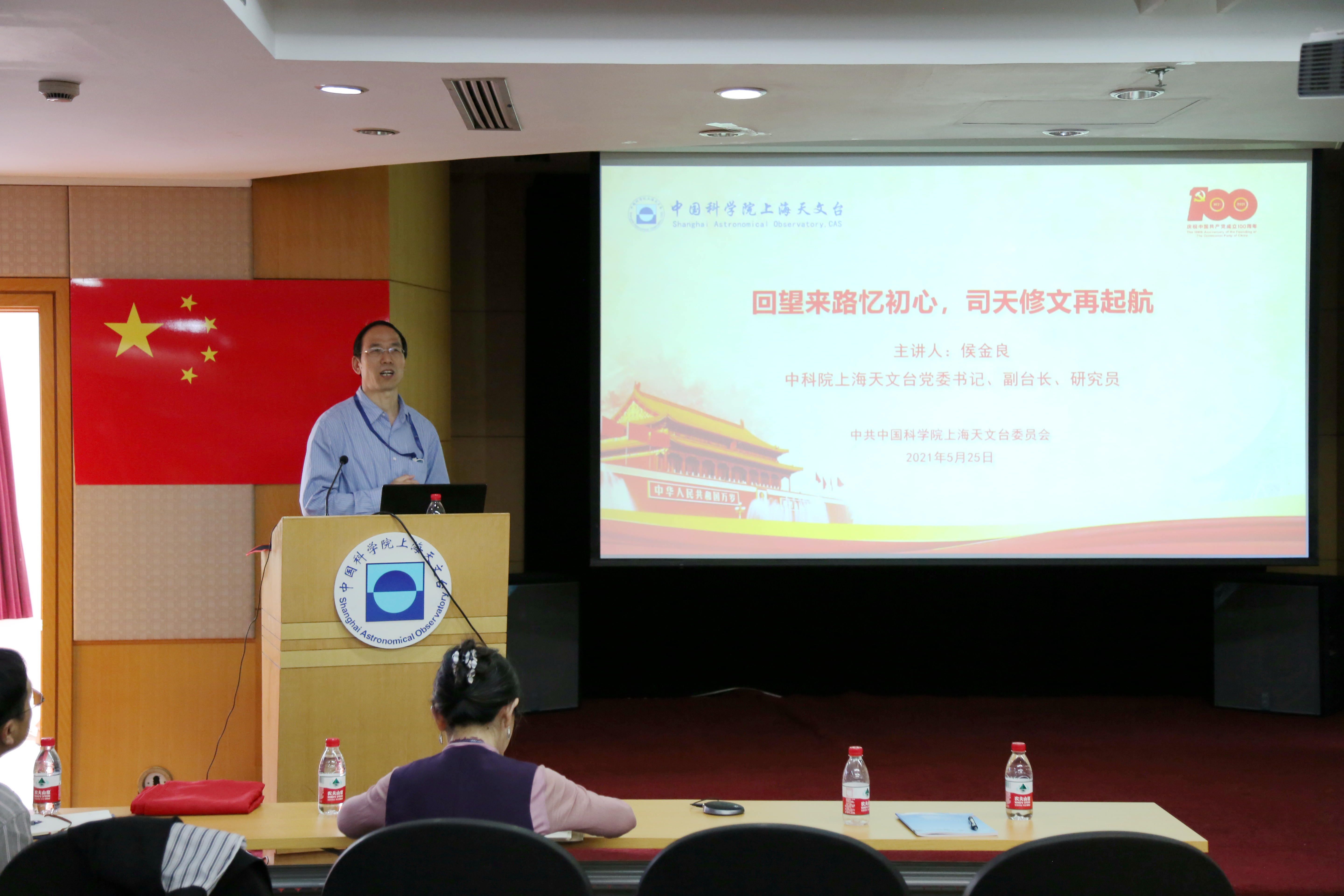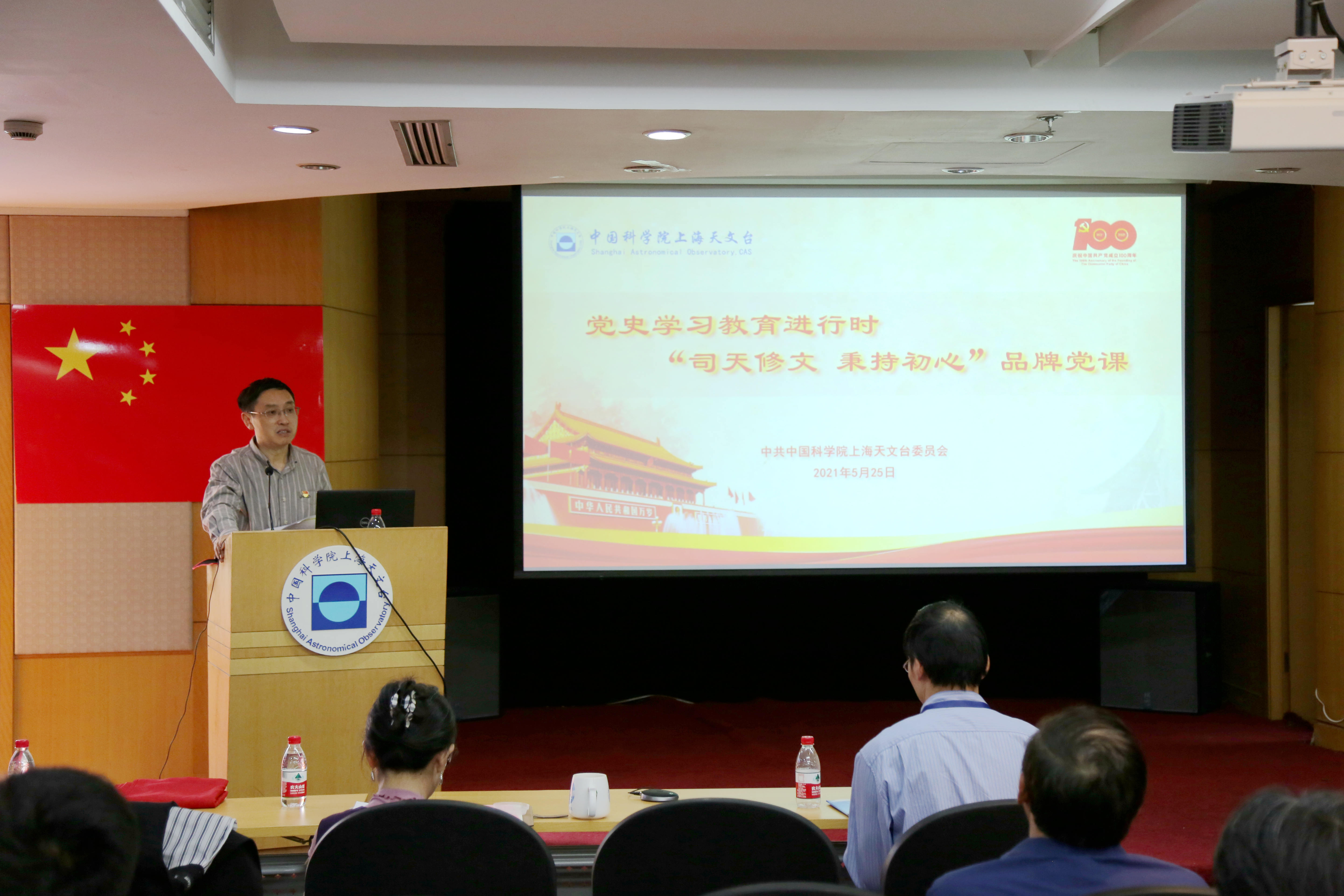 为庆祝中国共产党成立100周年,深入开展党史学习教育,激发广大党员、团员、职工和学生学史明理、学史增信、学史崇德、学史力行,实现学党史、悟思想、办实事、开新局,结合上海分院分党组、沪区党委组织开展的“百名党员讲百年党史”活动通知,5月25日下午,上海天文台开展“觉醒时分 追寻初心之源”党史学习教育,并正式启动“司天修文 秉持初心”品牌党课,激励党员干部不断加强党性修养,进一步坚定理想信念和科技报国之心。近百名党员通过线上线下的形式分别在徐家汇园区和佘山科技园区参加了会议。会议由台党委副书记、副台长陶隽主持。