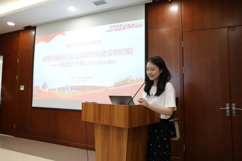机关三支部组织委员顾勤琴围绕改革开放和社会主义现代化建设新时期发生的大事件,讲述了从1987年党的十一届三中全会到2012年党的十八大之间风云激荡三十载,中国共产党带领全国各族人民走出了一条中国特色社会主义道路,向国际社会证明了社会主义的优越性。