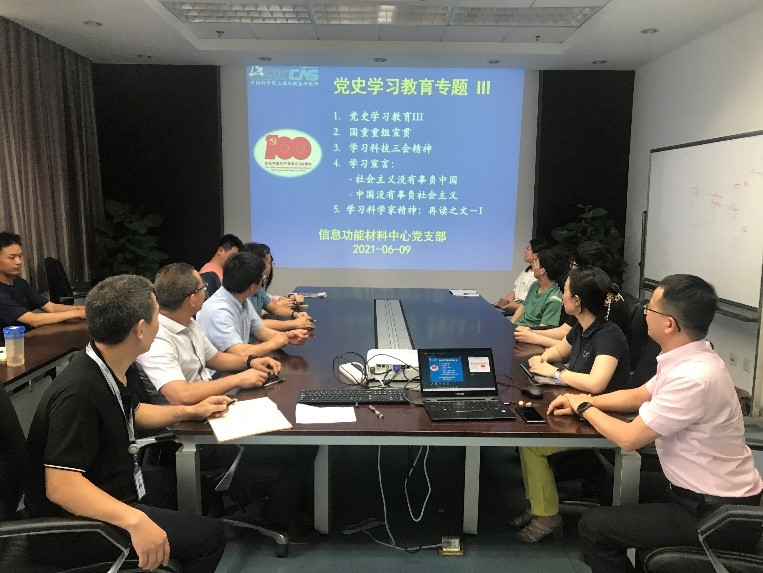 6月9日,中国科学院上海硅酸盐研究所信息功能材料与器件研究中心党支部开展党史学习教育“改革开放新时期历史”专题学习,支部党员及中心研究生党员等20余人参加了此次学习,学习活动由党支部书记曾华荣主持。