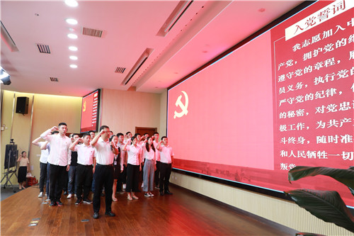 会议在庄严的国歌声中拉开序幕。党委书记李润伟带领钟志诚等18名新党员郑重宣誓。全体与会党员一起重温入党誓词。磁性材料党支部钟志诚同志代表新党员作了题为“胸有报国‘志’ 热血铸忠‘诚’”的发言。他郑重表态,要做“知史爱党”的先行者、“两个维护”的践行者、“科技创新”的开拓者、“助人成才”的引路者、永葆本色的先锋,时刻自警、自省、自律、自强,彰显新时代党员的良好形象,不负组织和人民的期望。