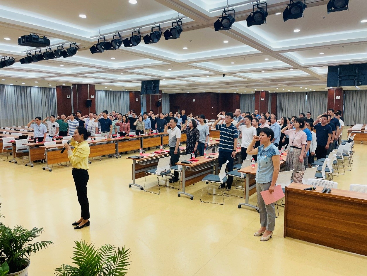 中试基地党支部副书记袁兰英领誓,全体党员紧握右拳,面向党旗郑重宣誓,激昂澎拜、铿锵有力。