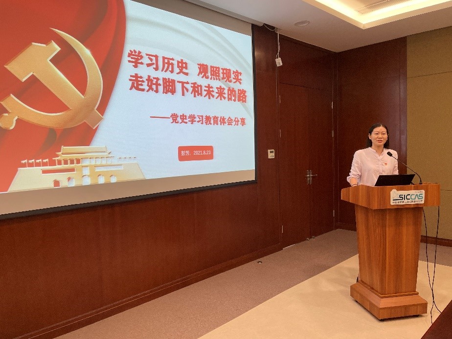 彭芳以“学习历史 观照现实 走好脚下和未来的路”为题为党员们上党课。她首先带领党员们重温了习近平总书记“七一”重要讲话精神,重点学习了全面建成小康社会的历史性成就、党团结带领人民不懈奋斗的光辉历程和伟大成就、32字伟大建党精神和以史为鉴、开创未来的“九个必须”根本要求。结合贯彻落实“七一”重要讲话精神,结合在我国第一个核武器研制基地旧址——青海省海北藏族自治州海晏县“两弹一星”理想信念教育学院学习的体会,结合思想、工作实际,她就“坚持和加强党对科技创新的领导”、“中国科学院和研究所的初心使命”、“培养具有竞争力的青年人才后备军”等三个方面交流了思考和体会。党课内容丰富,党员们深受启发。