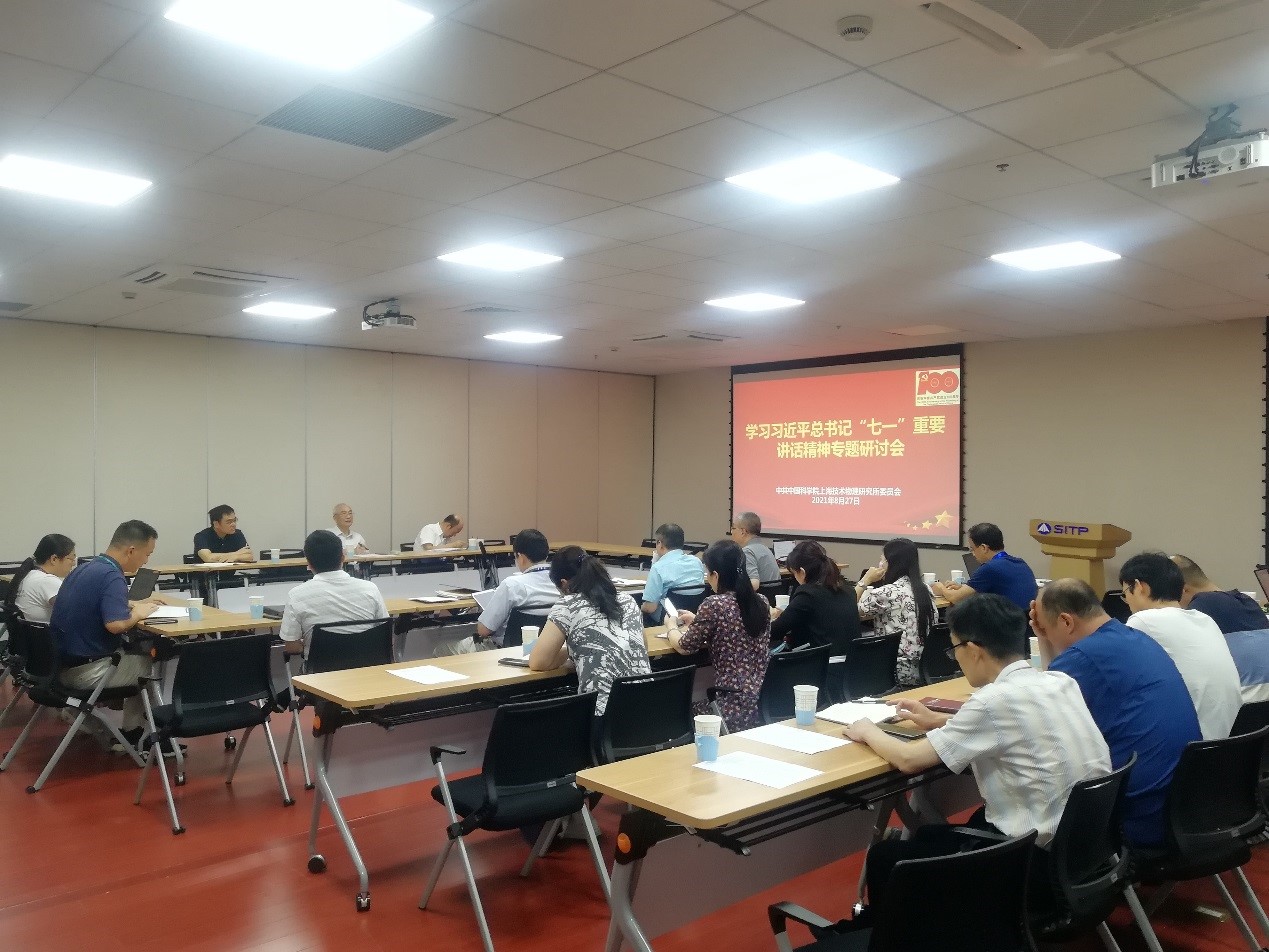 8月17日下午,上海技物所党委组织召开学习习近平总书记“七一”重要讲话精神第二次专题研讨会,党委委员、纪委委员、职能部门负责人、党支部书记代表参会,中科院党史学习教育第十五指导组组长成建军到会指导,党委书记龚海梅主持会议。