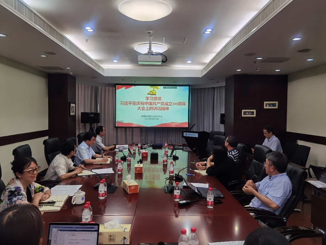 党委书记、副台长侯金良作专题报告,领学《习近平在庆祝中国共产党成立一百周年大会上的重要讲话》,要求全台职工,特别是党员同志要以学习贯彻习近平总书记“七一”重要讲话为契机,进一步统一思想、提高认识,提高政治站位,认真抓好院党组扩大会精神的传达贯彻落实,时刻牢记我们作为“国家队、国家人”的使命与责任,心系国家事、肩扛国家责,聚焦主责主业,做强优势长板;台党政一班人要进一步强化政治意识、担当意识、责任意识,主动作为,创造性地开展工作,坚决贯彻落实党中央、院党组和上海分院分党组的决策部署,发挥好台党委在党的建设、统筹协调方面的作用,推进全面从严治党、领导班子建设,加强人才队伍建设,提升基础研究和重大项目组织能力,凝聚全台力量共同推进上海天文台改革创新发展。