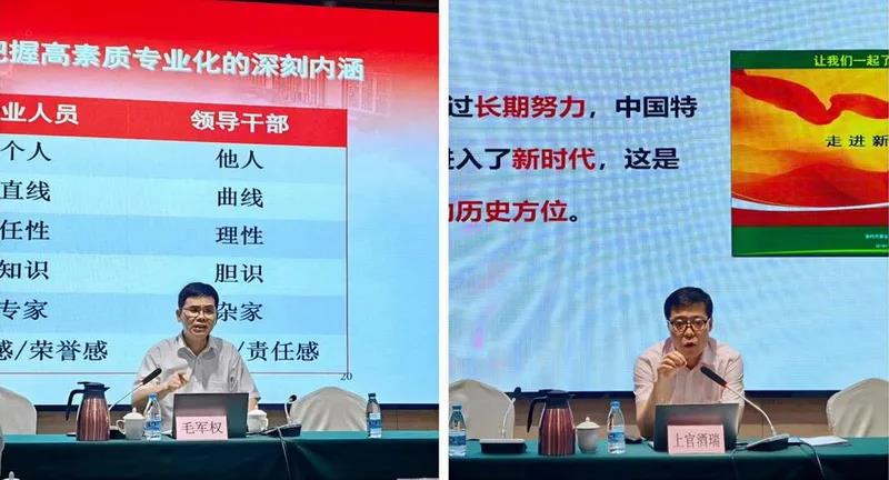 邀请上海市委党校教授毛军权、上官酒瑞就强化履职担当肩负时代重任、党风廉政建设新要求和新形势两方面进行系统深入讲授。