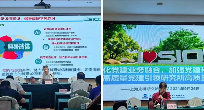 邀请中科院上海硅酸盐所纪检委书记杨建华,中科院上海光机所党办主任吴燕华就研究所党建和纪检工作开展的成功经验进行深度交流与讨论。