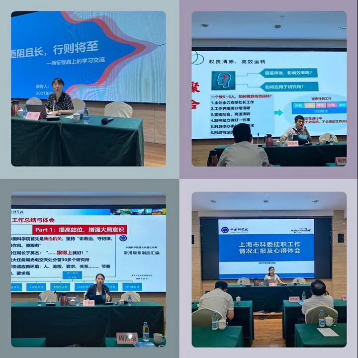 邀请卫星创新院近年选派外调的四名党员介绍了挂职经历,他们分别从实际出发谈心得体会和经验收获,从挂职单位与卫星创新院业务和党建工作之间的比较中分析存在的差异和差距,并结合自身体会、立足卫星创新院高质量发展建言献策。