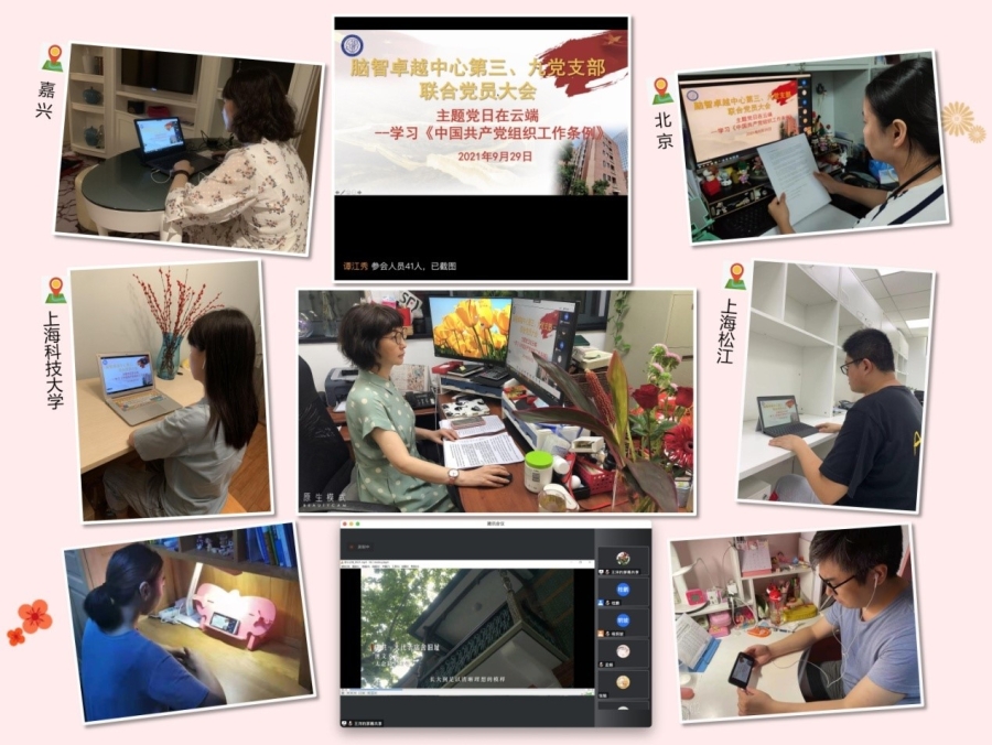 在祖国72岁生日到来之际,2021年9月29日晚,脑智卓越中心第三、第九党支部联合举办了学习《中国共产党组织工作条例》主题党日活动。党委副书记(主持工作)王燕和第三、第九支部的党员同志们在“云端”相会,一起学习《中国共产党组织工作条例》。