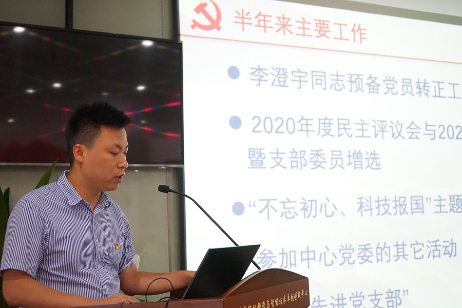 陈爱兵代表支委会向与会党员报告了半年来支部开展的主要工作,并检视不足,提出了整改举措以及下一步工作安排。他在报告中指出,了解党的历史,特别是党的初心使命、发展历程、奋斗目标、路线方针,是每位同志作为一个党员的基本义务,应认真学习党史,同时把党史学习与新中国发展史、改革开放史和社会主义发展史相结合。要进一步改进学习方法,致力于建设一个乐于学习、善于学习且学有所得的学习型支部。作为党员,要有社会责任感,要关心社会,团结同志,联系群众,解决问题。从举手之劳、力所能及的小事做起,逐步培养起这种责任意识和担当。