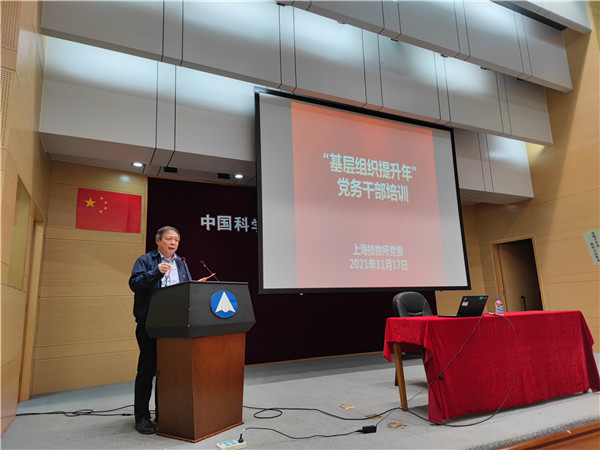 2021年11月17日下午,上海技物所党委在光电大楼报告厅开展了“基层组织提升年”党务干部培训。党委书记龚海梅出席并作动员讲话,中科院上海分院党建督导组组长成建军应邀作题为《提升支部组织力--关于支部建设与科研主业的融合发展》的培训报告。全所各支部(总支)书记、副书记和委员共计75人参加培训,培训由党委办公室主任付立英主持。