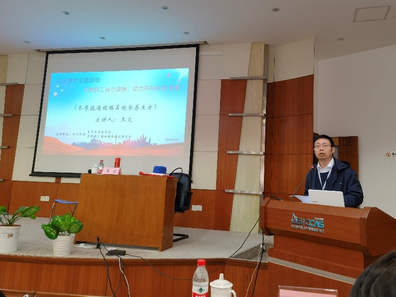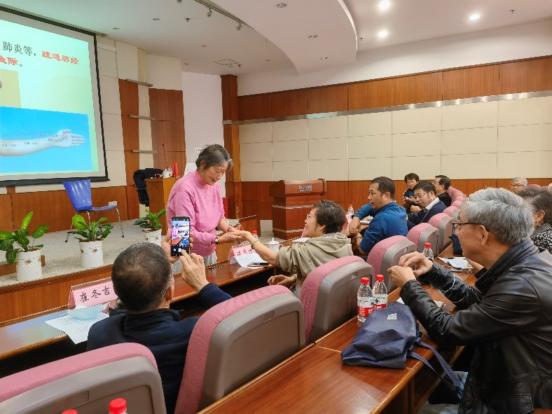 活动邀请上海硅酸盐所退休职工王文作“冬季疏通经络&饮食养生方”讲座。她结合现代人对冬季养生的关注点,就起居生活、饮食养生、穴位按摩养生等作了深入浅出的介绍,特别针对办公室久坐人员示范讲解了如何保养和按摩穴位缓解颈肩腰痛。讲座丰富多彩,猜谜环节寓教于乐,气氛活跃,精彩的讲座让大家感受到中医的博大精深,纷纷表示获益匪浅。
