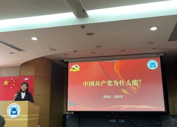 管理支撑党支部左文文同志上主题为《中国共产党为什么能》的党课,通过图片和视频直观展现了在党的领导下,中华民族从站起来、富起来到强起来的伟大飞跃,结合党史中典型案例和人物故事,围绕坚持科学理论指导、坚持理想信念、坚持初心使命、坚持光荣革命传统、坚持推进自我革命六个方面阐释了“中国共产党为什么能”,号召大家不断提升思想认识,激励全体党员将党史学习的心得充分融入日常科研攻关和创新管理工作实践。